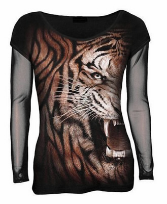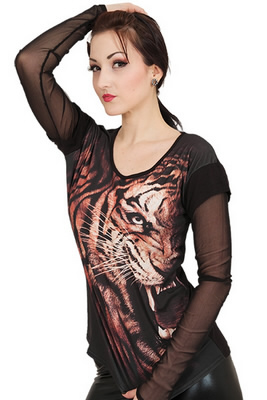 Langarm Shirt mit Tiger Print und Netzärmeln