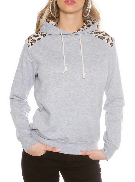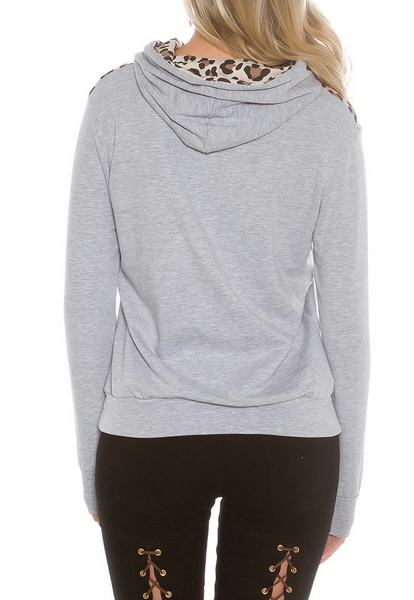 Stylischer grauer Hoodie mit Leo-Animal-Einsätzen