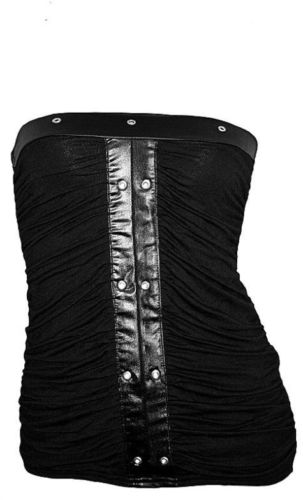 Schwarzes Corset mit Leder-Look Einsätzen und Oesen