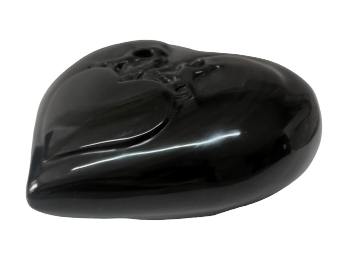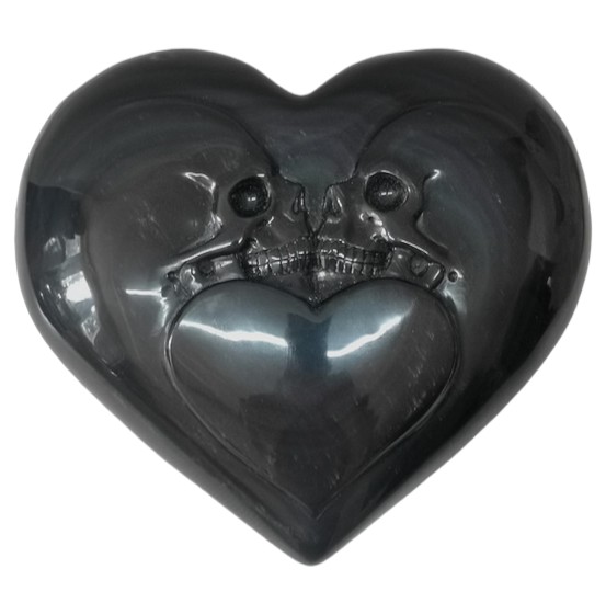 Schön detailliertes Herz mit Herz und zwei Schädel, aus Rainbow-Obsidian