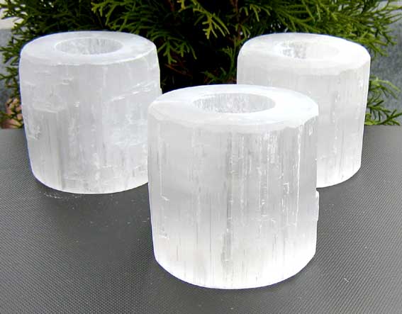 Roher, oranger Selenit mit Aushöhlung zum Einsetzen eines Teelichtes.