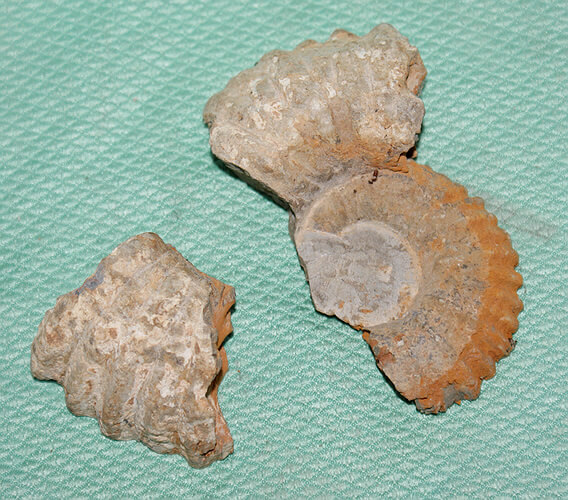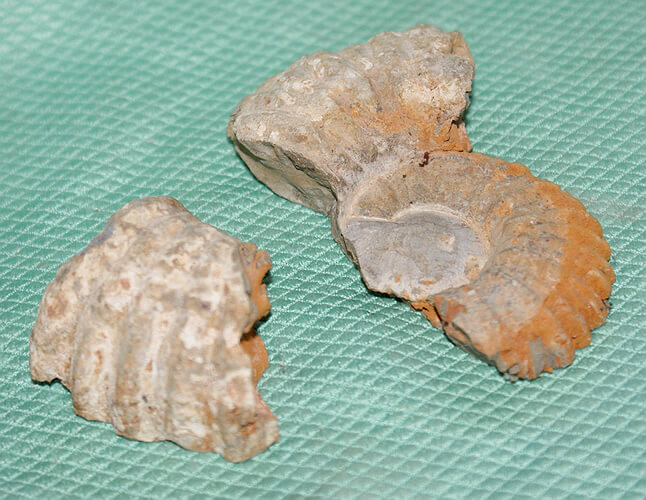 Zwei Bruchstücke eines Versteinerter Ammoniten