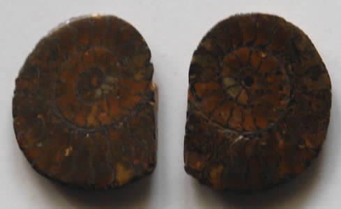 Ein Ammonit aus Madagaskar, zersägt in zwei Hälften. (also 2 Stücke, siehe Foto)