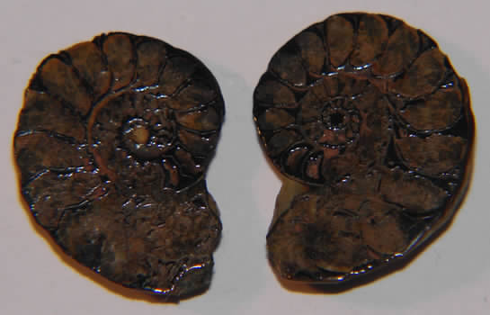 Ein Ammonit aus Madagaskar, zersägt in zwei Hälften. (also 2 Stücke, siehe Foto)