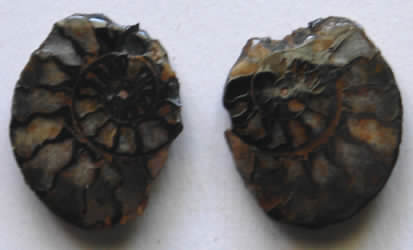 Ein Ammonit aus Madagaskar, zersägt in zwei Hälften. (also 2 Stücke, siehe Foto)
