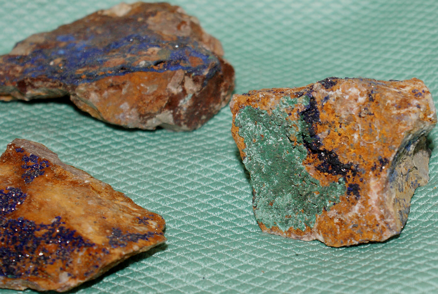 4 Erzgesteine mit Azurit & Malachit