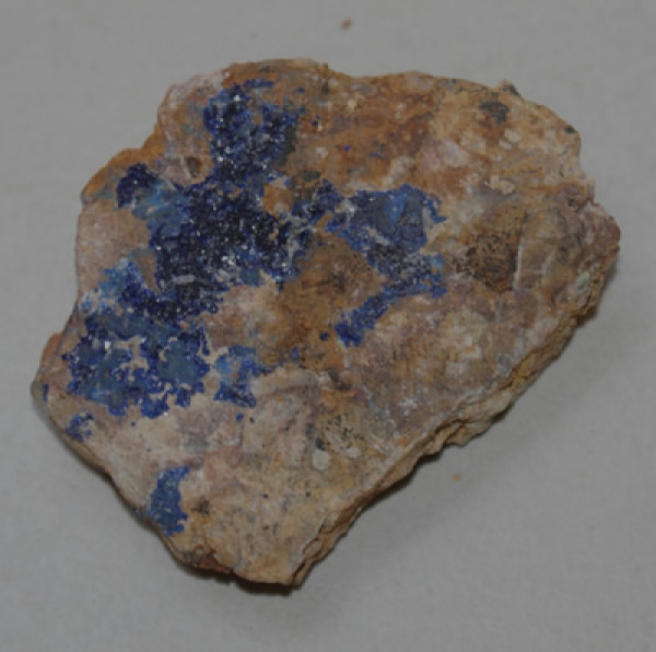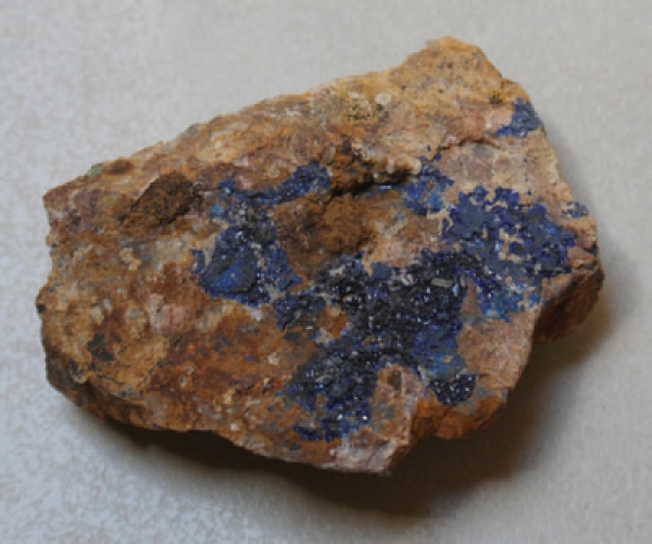 kleine, leuchtende Azurit mit ganz wenig Malachit auf Erzgestein aus Marokko