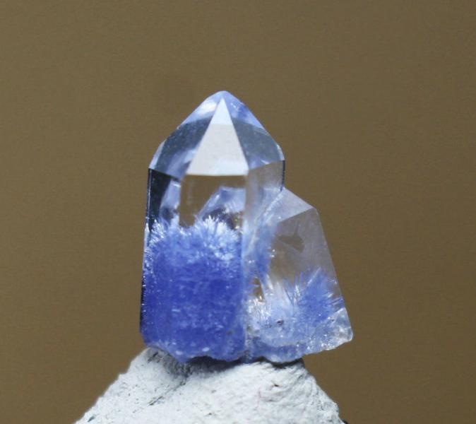Bergkristall-Spitze mit blauen Dumortierit einschlüssen