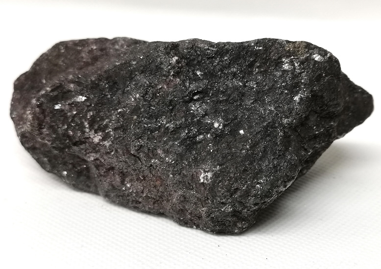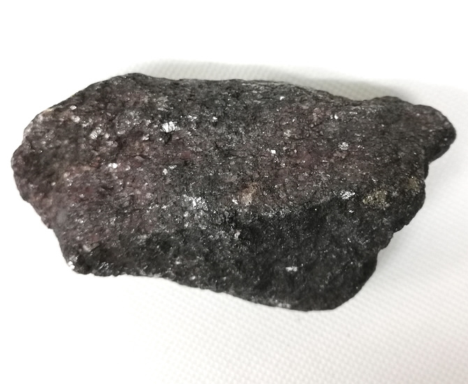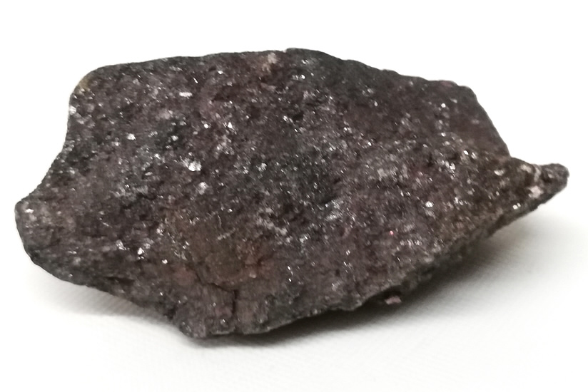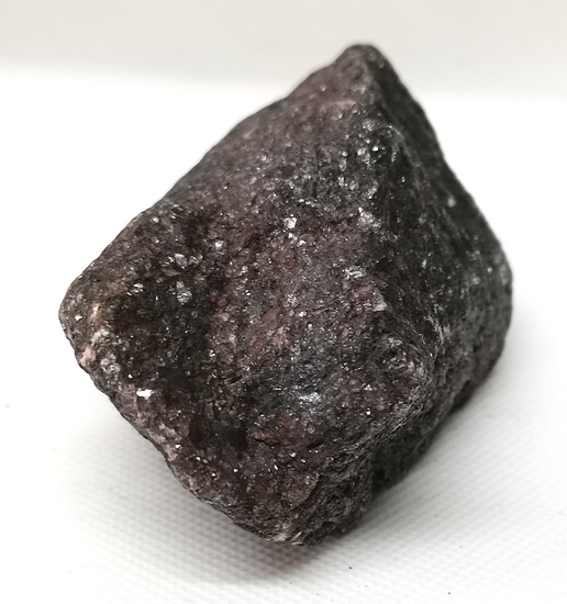 Dunkler farbintensiver glitzernder Rhodonit Rohstein mit schwarzen, rosa, roten, orangenbraunen und weissen Inklusen