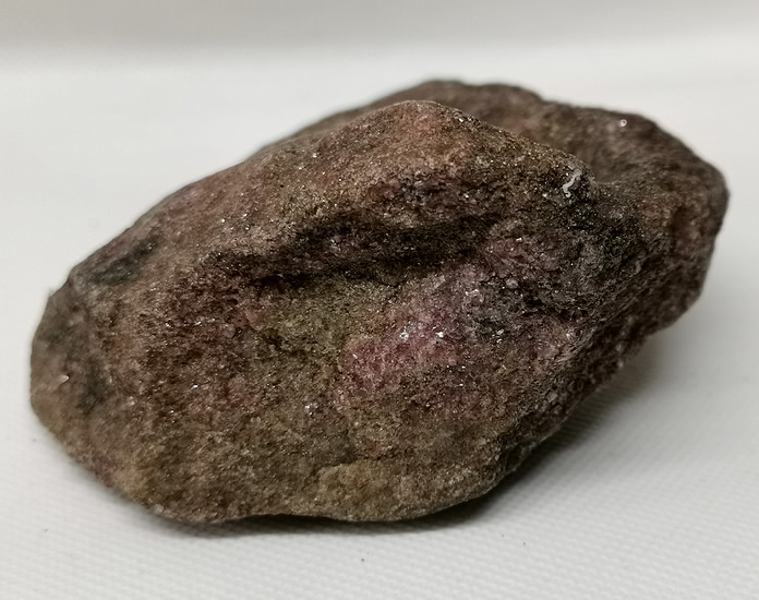 Farbintensiver glitzernder Rhodonit Rohstein mit schwarzen, rosa, roten, orangenbraunen und weissen Inklusen