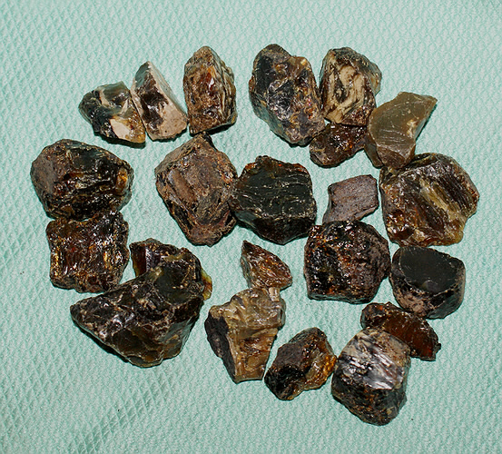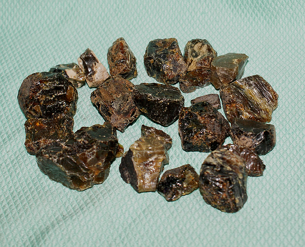 Roher Bernstein aus Sumatra, Indonesien, wird auch als Blauer Bernstein bezeichnet.