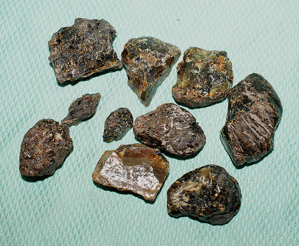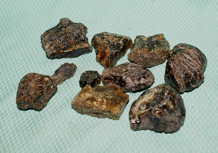 Roher Bernstein aus Sumatra, Indonesien, wird auch als Blauer Bernstein bezeichnet.