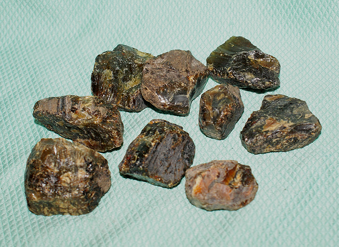 Roher Bernstein aus Sumatra, Indonesien, wird auch als Blauer Bernstein bezeichnet.