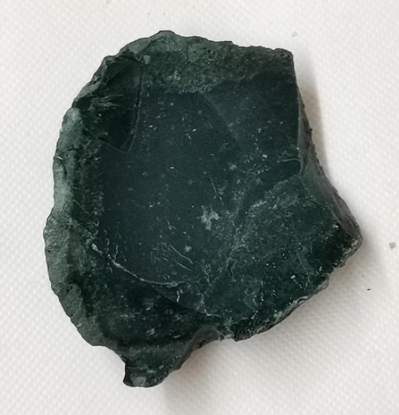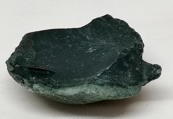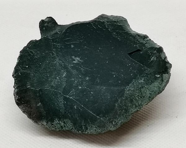 Grüner Heliotrop Rohstein mit wenigen sehr feinen roten Inklusen.