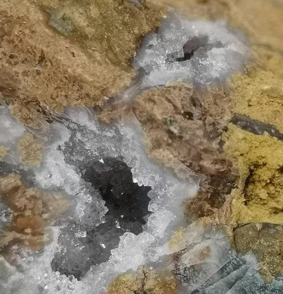 Jaspis Rohstein mit Quarz und Kristallqaurz-Höhlen