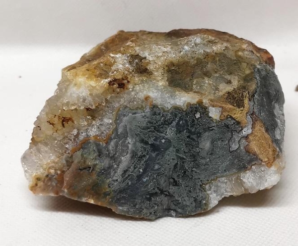 Jaspis Rohstein mit Quar, grün, blau-grau, weiss, braun