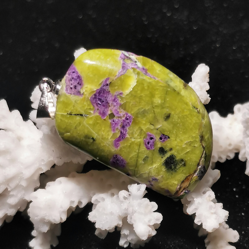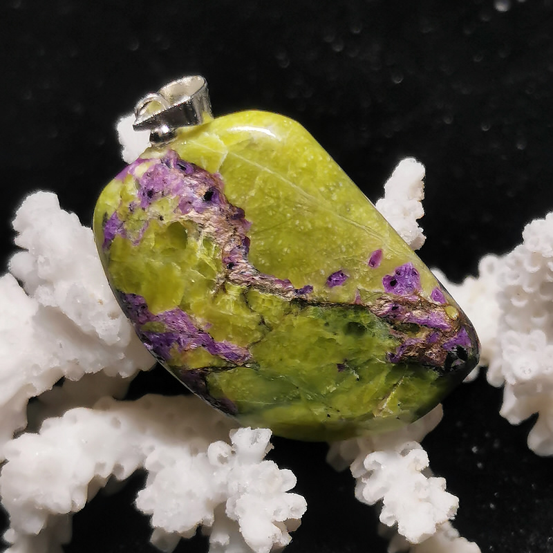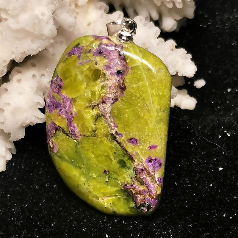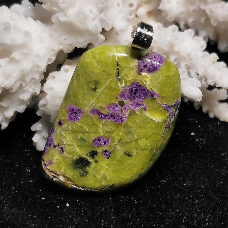 Atlantisit ist ein gemisch aus Serpentin (grün) und Stichtit (violett)