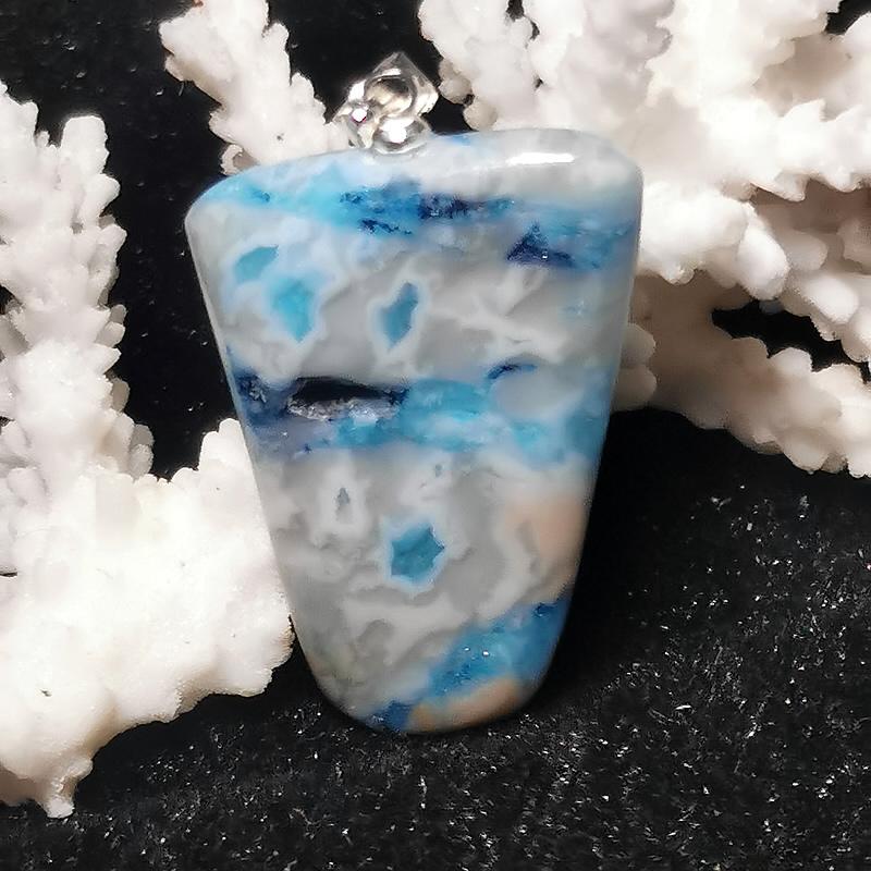 Anhänger Blauer Cracy Lace Achat mit 925er Silber Öse