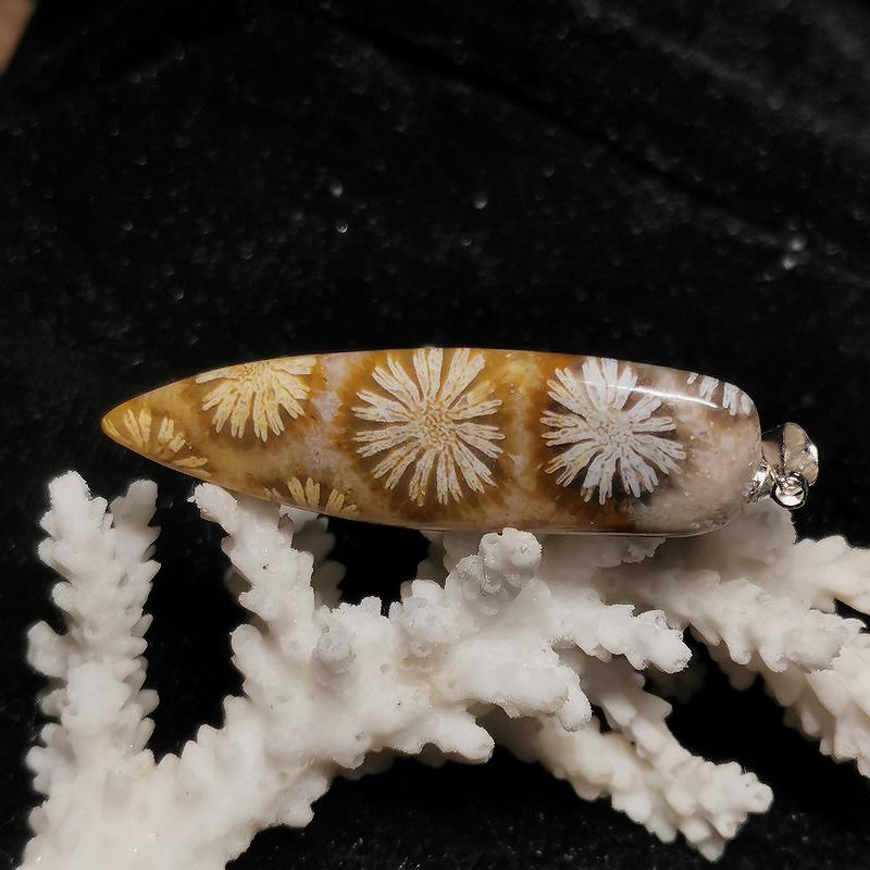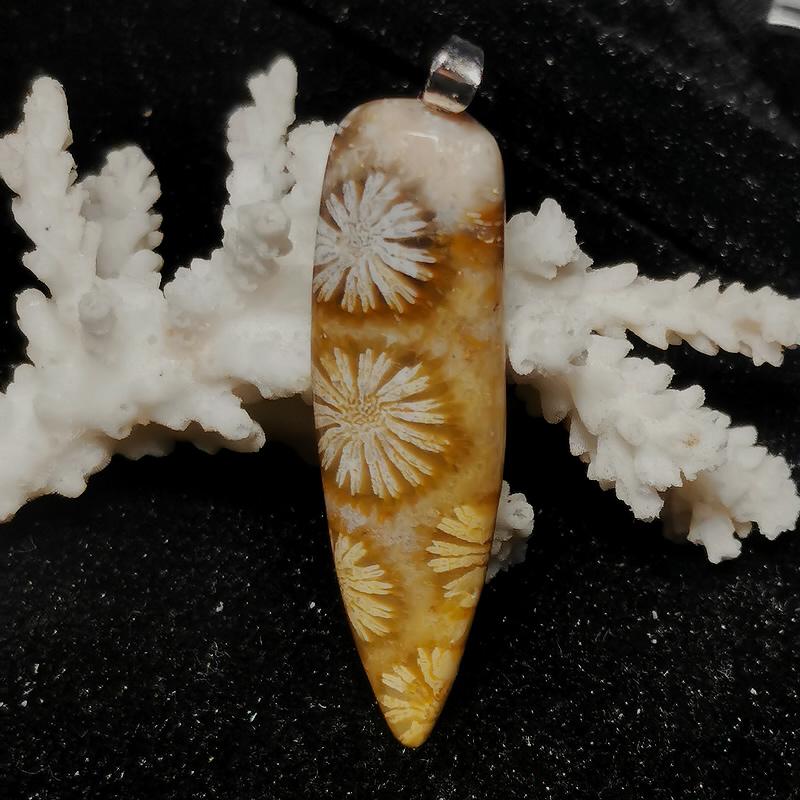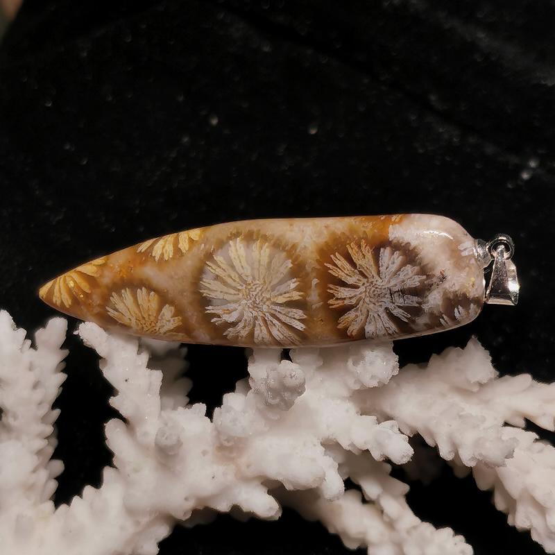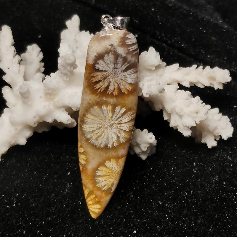 Anhänger Versteinerte Koralle mit 925er Silber Öse