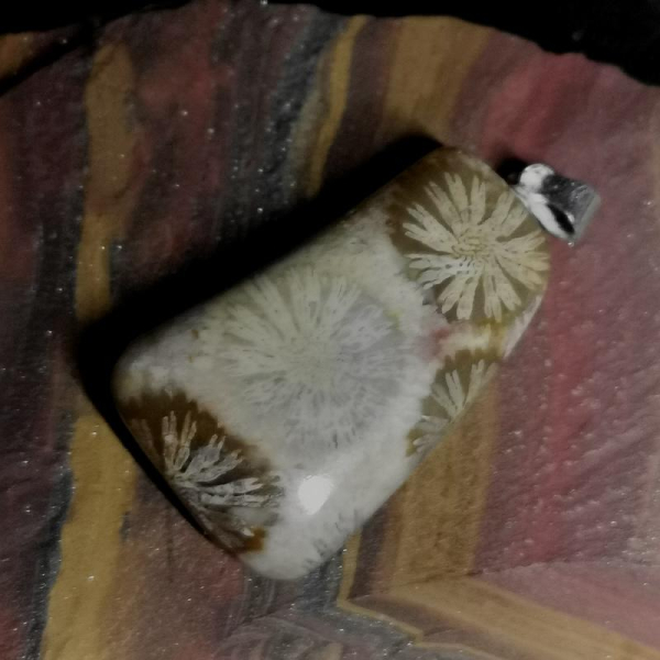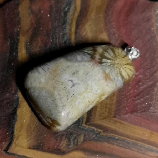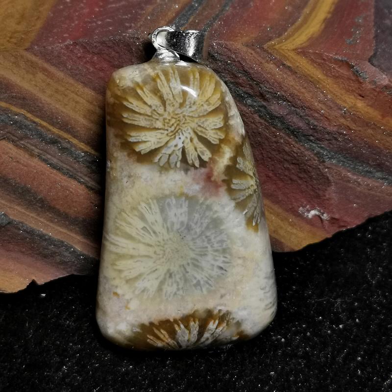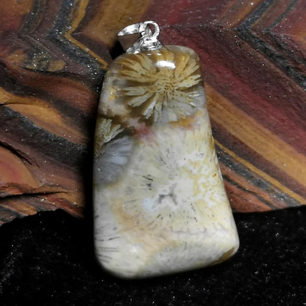Anhänger Versteinerte Koralle mit 925er Silber Öse