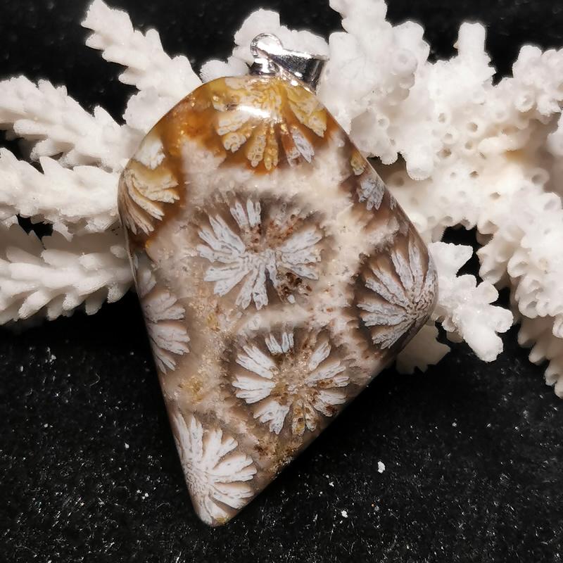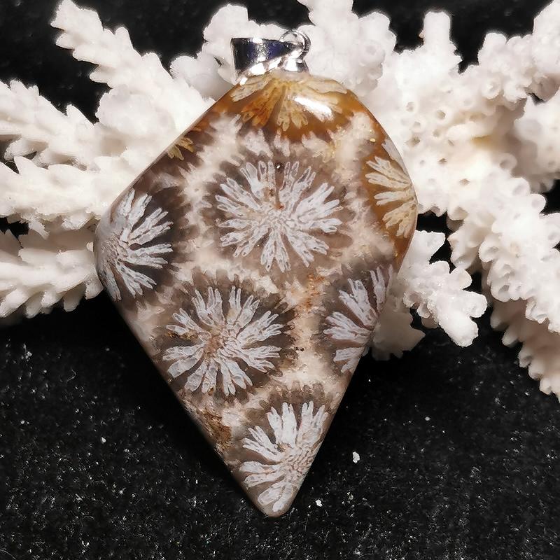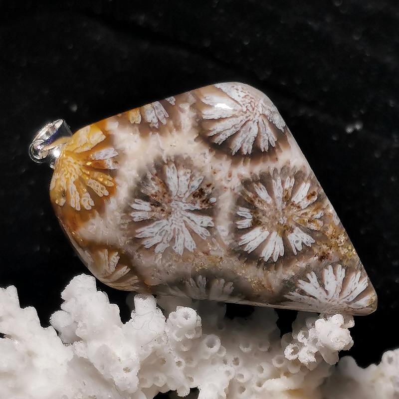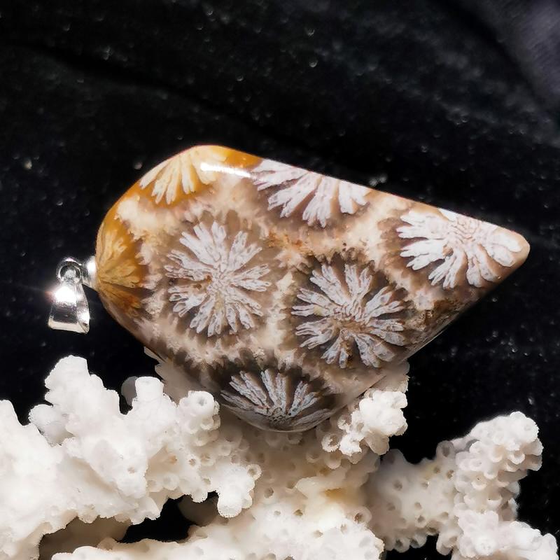 Anhänger Versteinerte Koralle mit 925er Silber Öse