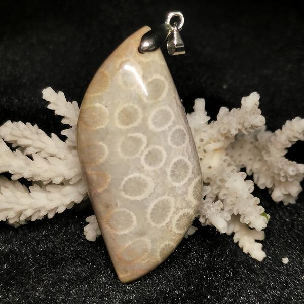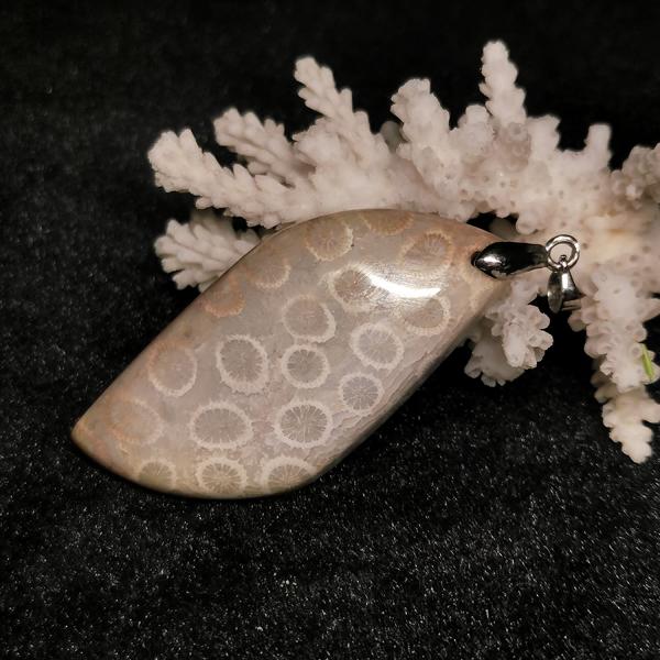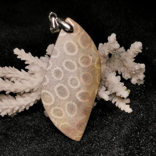 Anhänger Versteinerte Koralle mit 925er Silber Öse