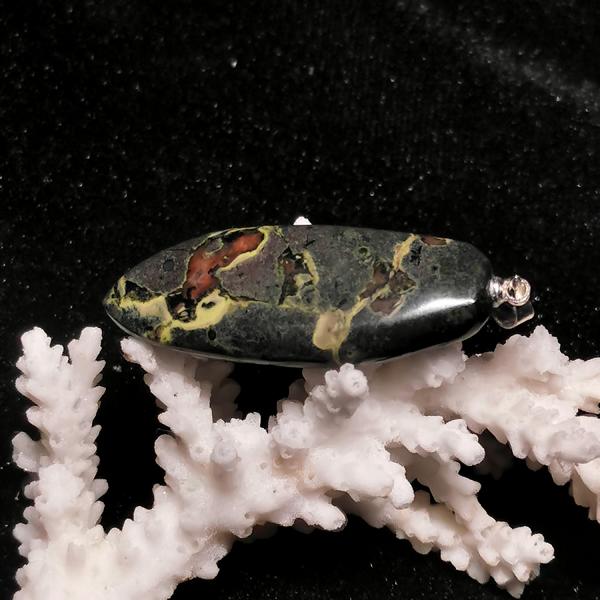 Anhänger Red Green Lotus Leafe Jade mit 925er Silber Öse