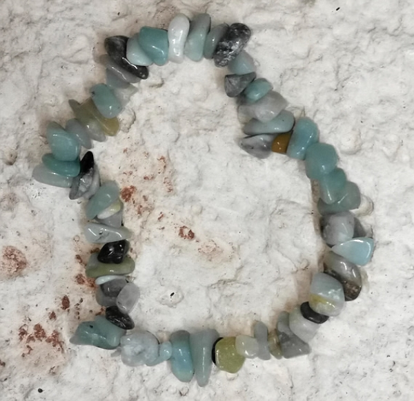Die Armbänder sind auf elastischem Gummiband aufgezogen, die Steine sind in unterschiedlicher Grösse kantengerundet (getrommelt).