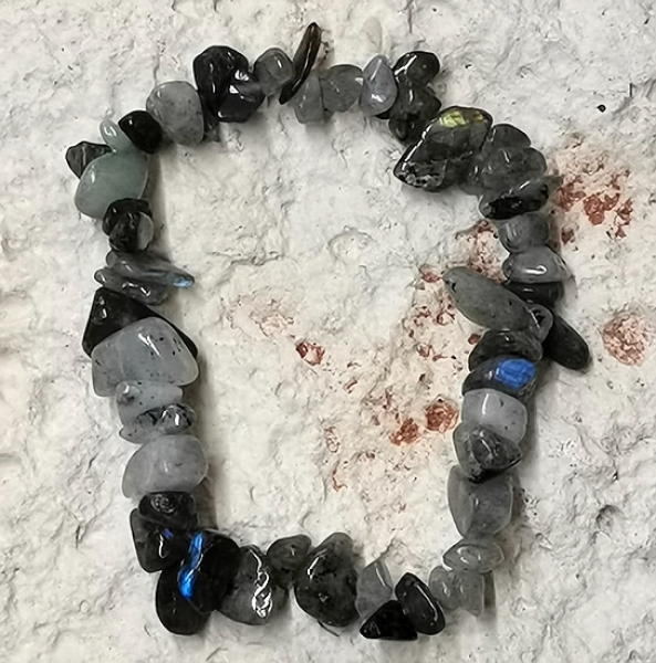 Die Armbänder sind auf elastischem Gummiband aufgezogen, die Steine sind in unterschiedlicher Grösse kantengerundet (getrommelt).