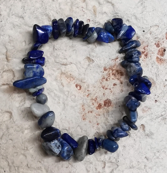 Die Armbänder sind auf elastischem Gummiband aufgezogen, die Steine sind in unterschiedlicher Grösse kantengerundet (getrommelt).