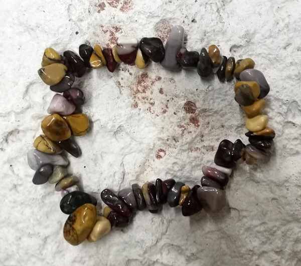 Die Armbänder sind auf elastischem Gummiband aufgezogen, die Steine sind in unterschiedlicher Grösse kantengerundet (getrommelt).