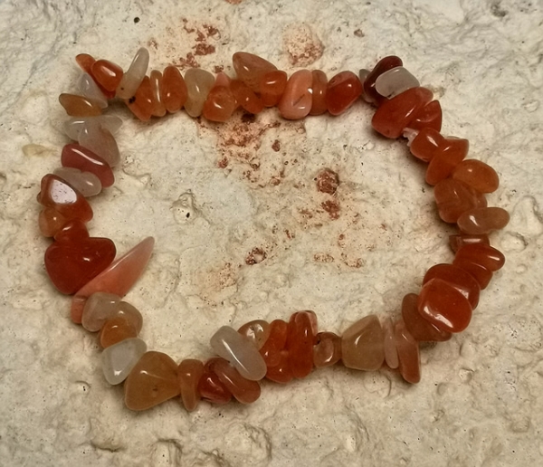 Die Armbänder sind auf elastischem Gummiband aufgezogen, die Steine sind in unterschiedlicher Grösse kantengerundet (getrommelt).