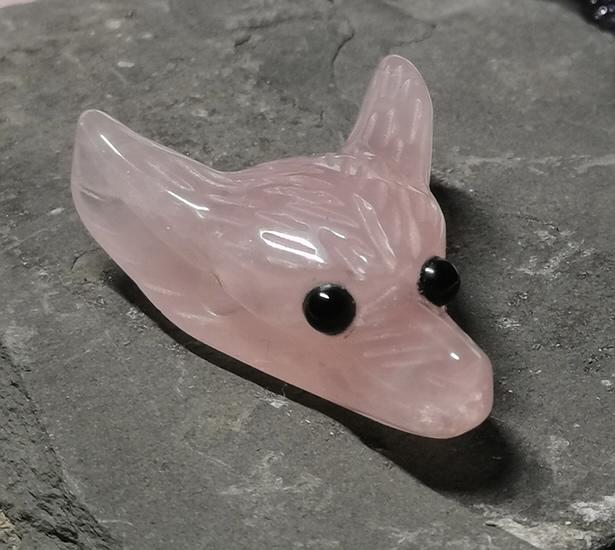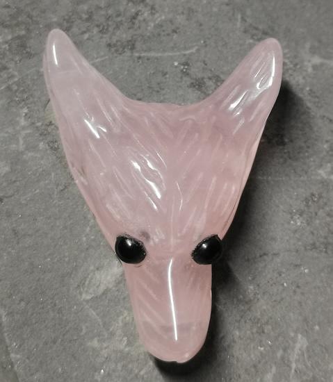 Wolfskopf Rosenquarz Anhänger mit Onyx Augen