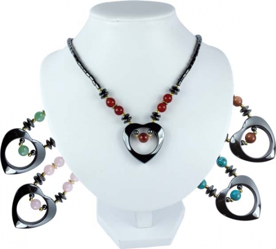 Hämatin Herzkette mit Stein Kugeln nach wahl