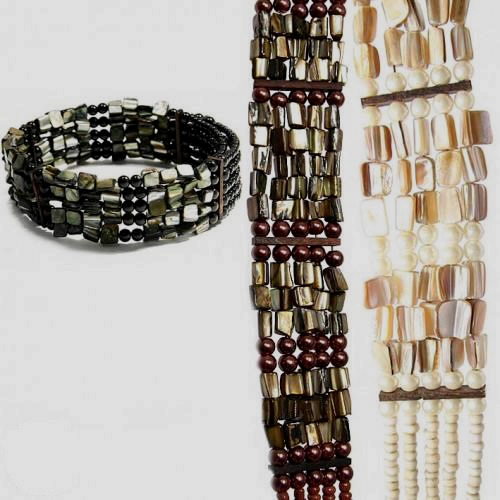 In den Farben schwarz, weiss und braun (Farbzuweisung anhand der runden Perlen).