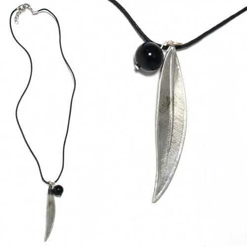 Wachsband Halskette mit Blatt- und Kugel- Anhänger