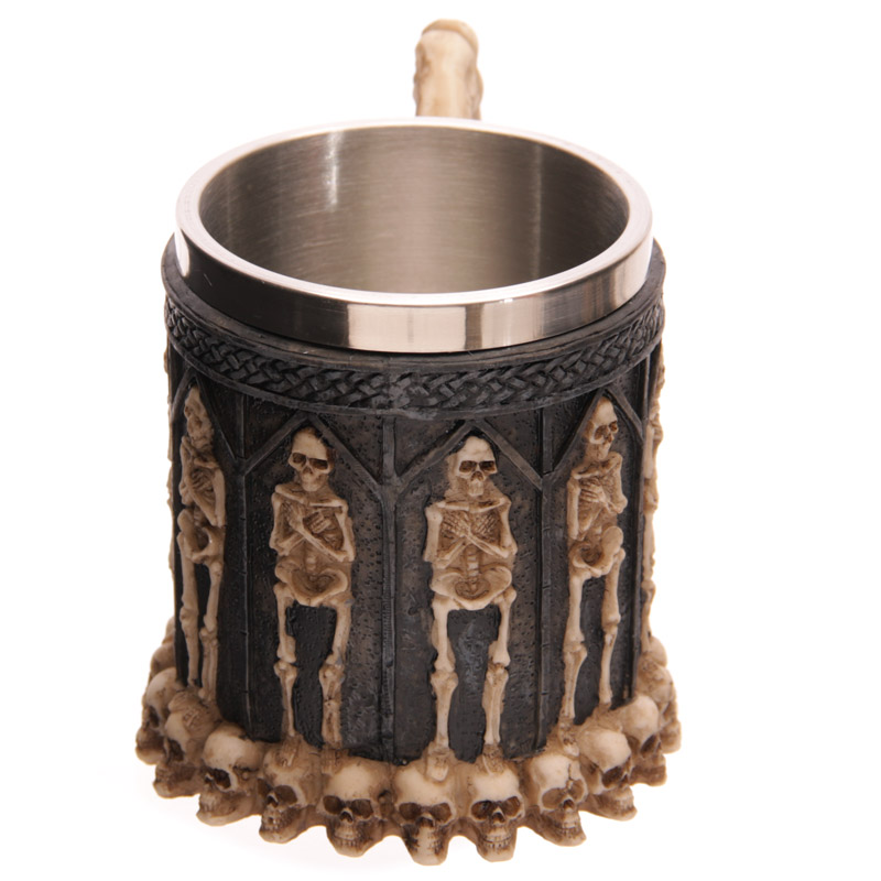 Der Krug besteht aus Resin mit Edelstahl Einsatz.