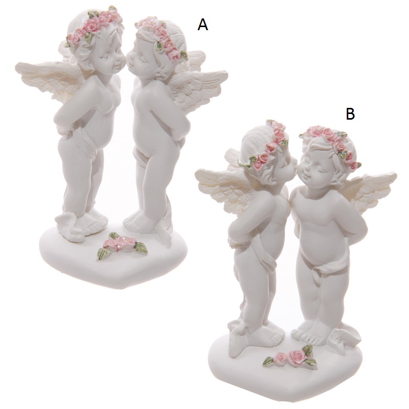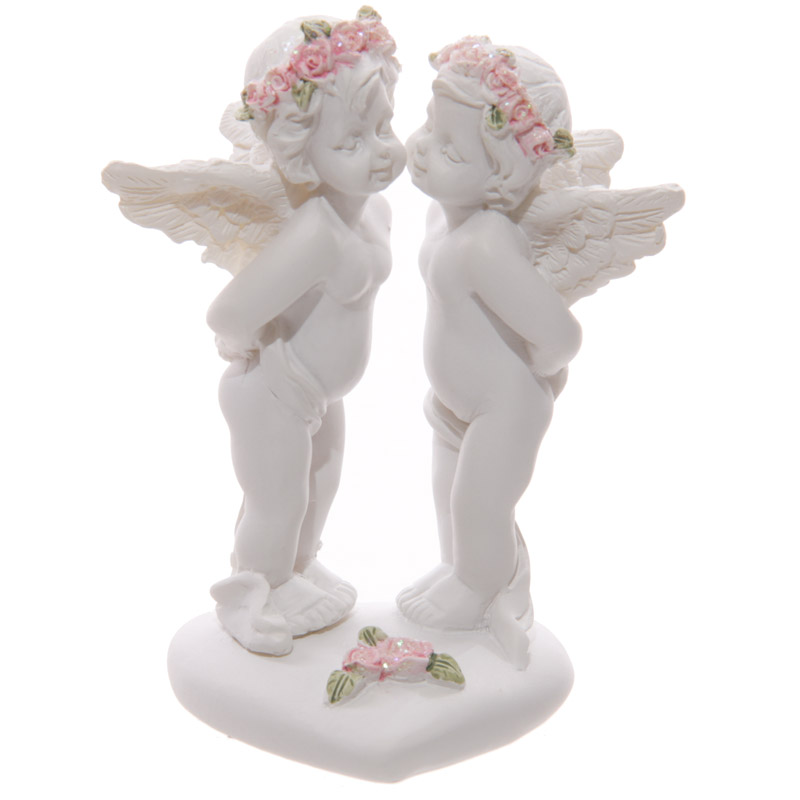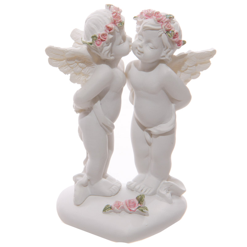 Engelchen Küsst auf Herz mit Rosa Rosen